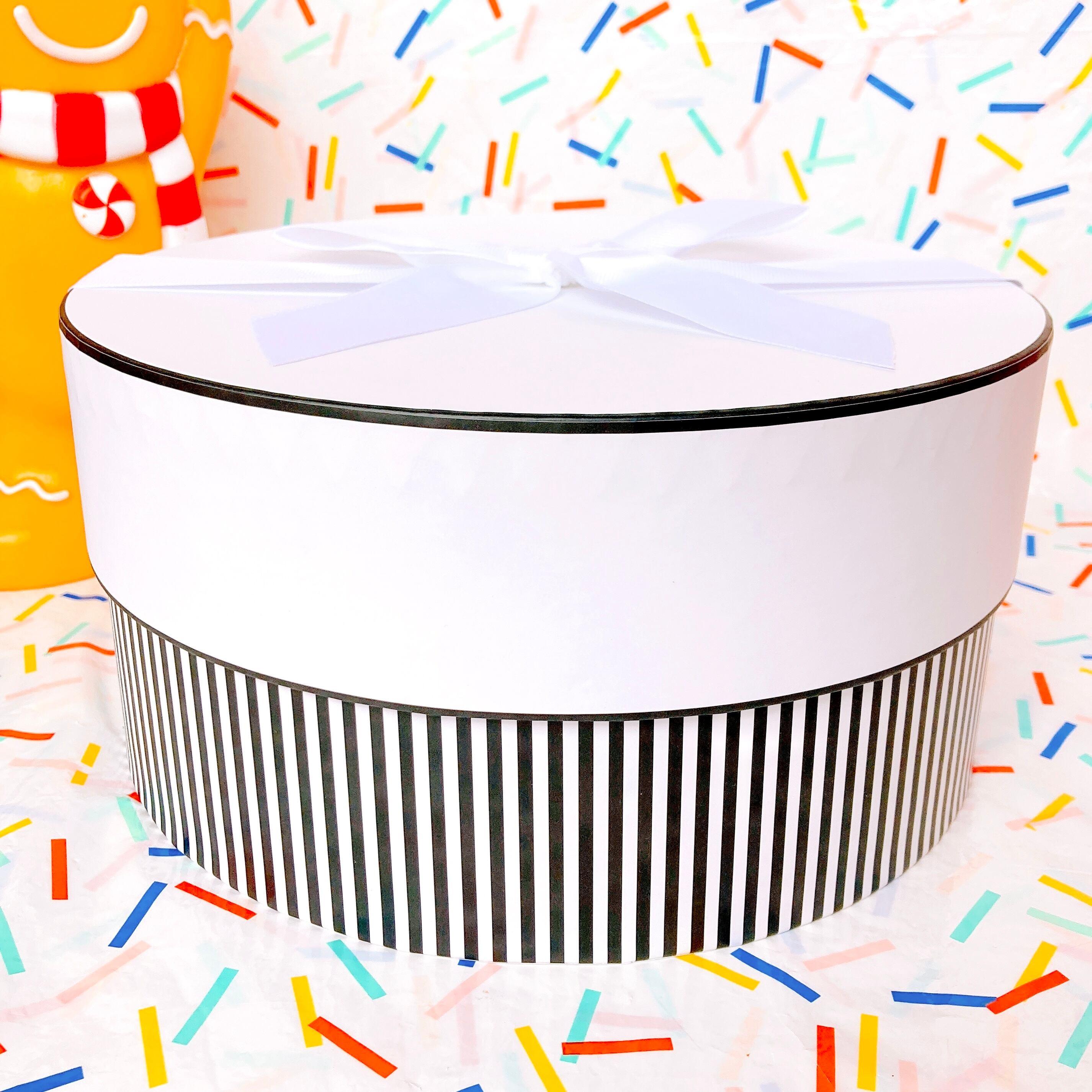 リボン付 ストライプ ラウンドBOX ホリデー クリスマス 雑貨