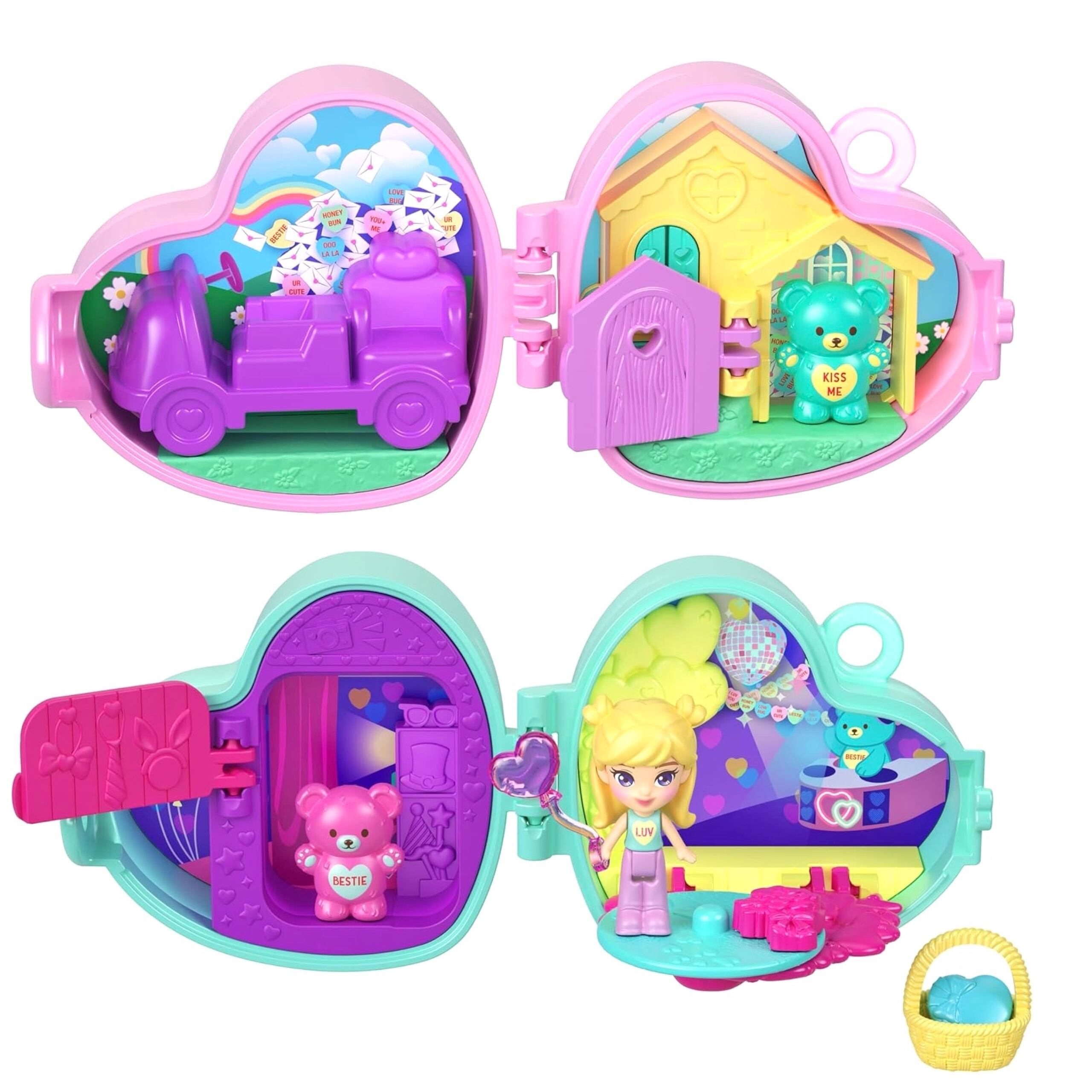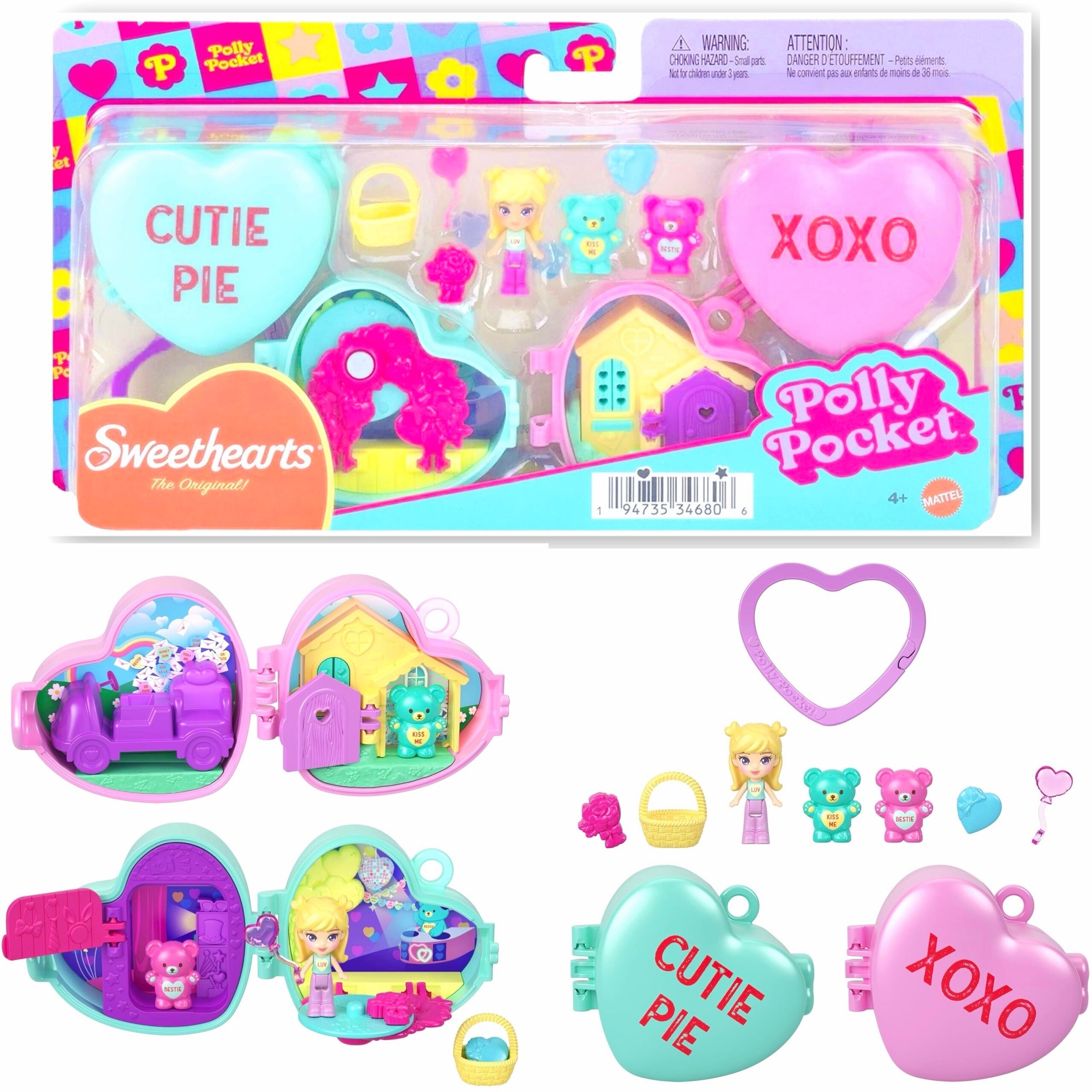 Polly Pocket × Sweethearts キャンディハーツ Candy hearts Stackable Compact Playset Bundle with Micro Doll アメリカ おもちゃ